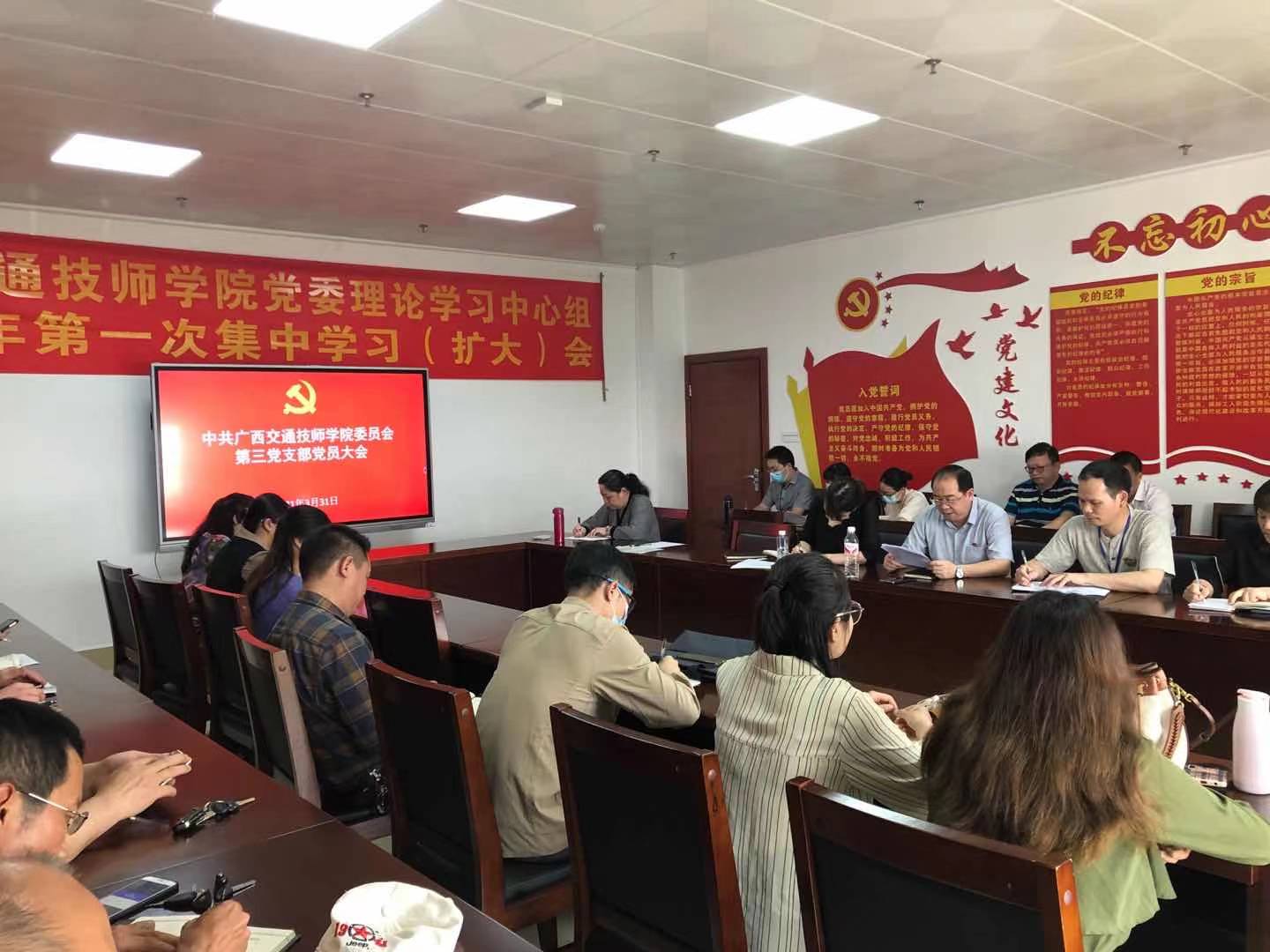 3月31日下午,根据学院党委工作部署,第三党支部在综合楼1526党员活动室组织召开学习贯彻十九届中央纪委五次全会、自治区纪委十一届七次全会和2021年全区交通运输系统党风廉政建设工作会议精神专题党课学习会,支部纪检委员伍阳同志主讲,第三党支部全体党员参加了本次学习会。