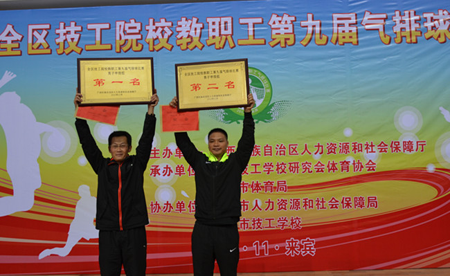 学院气排球队在院领导的大力支持下,参加广西人力资源和社会保障厅举办的全区技工院校第九届气排球比赛,勇夺男子甲级组第一名,女子甲级组第二名。